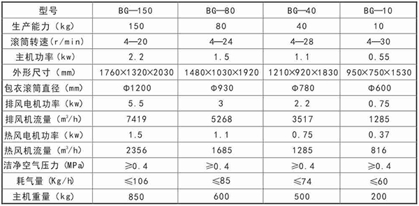 高效智能包衣機(jī)主要參數(shù):